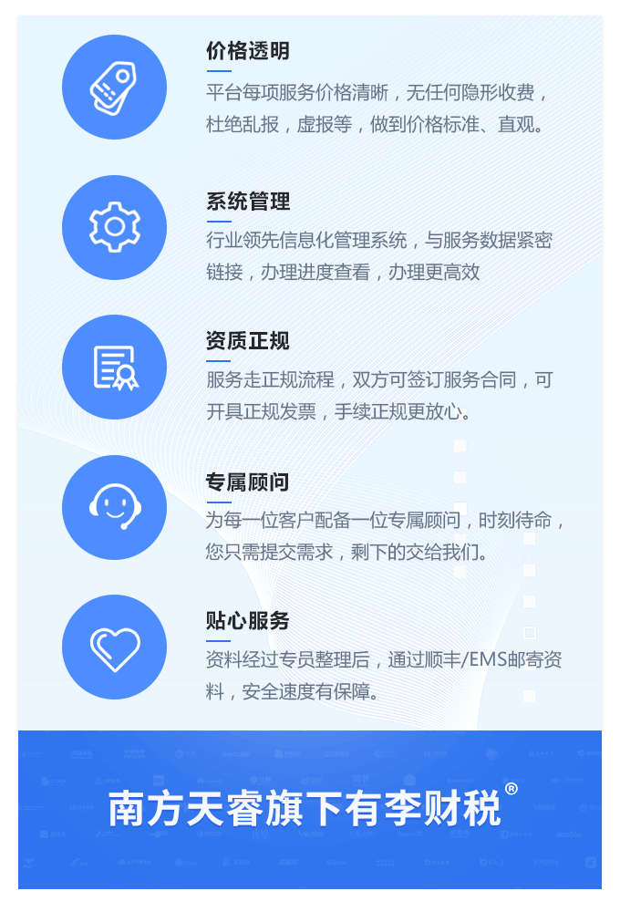服务介绍:提供3年以上资深会计、一对一高效服务、税务团队严格审查为您的企业记账报税